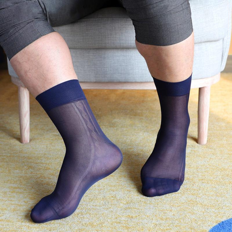 1Pair Solid Color Breathable Business Wear Stockings Sheer Silk Socks Ultra Thin Stylish Sexy Men's Dress Nylon