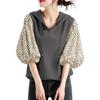 ZANZEA Women Casual Polka Dot Print Splice 3/4 Sleeve Loose Hoodies Blouse