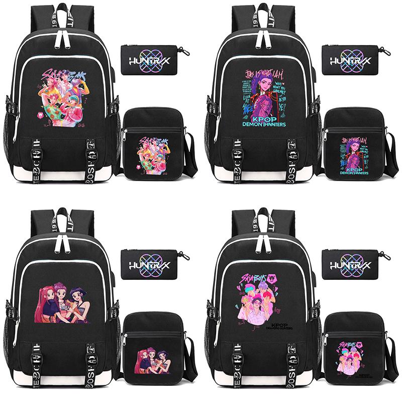 3Pcs/set Anime Cartoon Kpop Printed Backpack with Shoulder Bag Pencil Case for Teenager Girl Boy Bookbag Large Capacity Waterproof Travel Bag Kid Gift