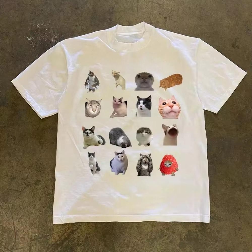 Funny Cat Memes American Pure Cotton Summer Fashion Casual Streetwear Suitable for Men and Women Autumn and Winter Innerwear