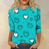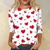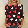 Women's Fashionable Casual Three-quarter Sleeve Valentine's Day Printed Round Neck Top