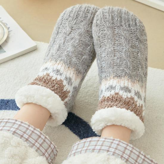 Yousheng Knitted Slipper Socks Fluffy Winter Ankle Socks with Grips Non Slip Low Cut Indoor Warm Socks for Home Living Room Bedroom Playroom