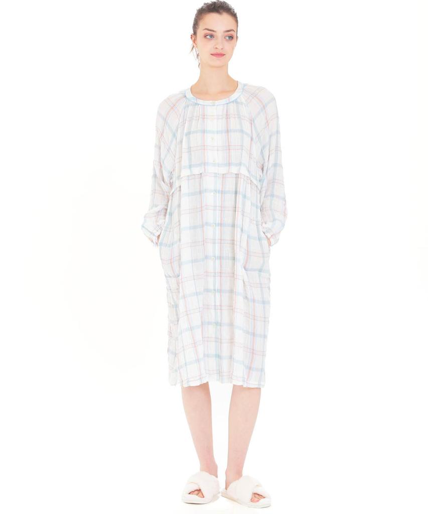 Narue Shirred Double Gauze Check Sizes Women's Nightgown, Sax, M-L