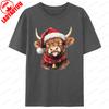 Funny Highland Cow Christmas Shirts Farm Cow with Santa Hat T-Shirt Xmas Bell Country Woman Men Christmas T Shirts Print Tops