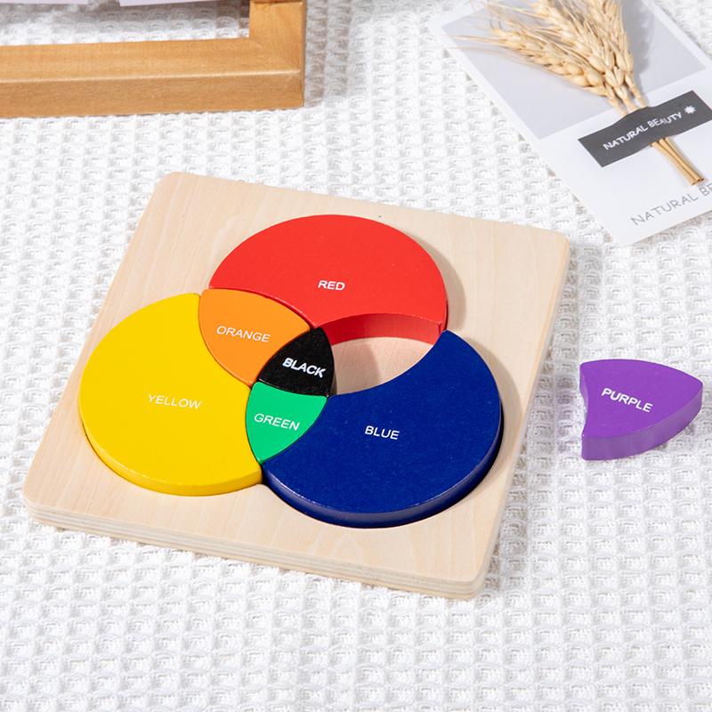 Wooden Three Primary Color Puzzle Board Building Blocks Children's Puzzle Early Education Color Cognition Board