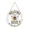 1Pc Bee Welcome To Our Hive Wood Hanging Sign For Home Garden Decor,Rustic Round Wooden Wall Hanging Plaque Sign For Outdoor Dec
