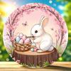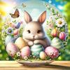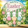 1 Piece of Farmhouse Wooden Easter Logo, 7.87 Inches X 7.87 Inches Round Sign, with Rabbits and Chickens, Festive Wall and Door