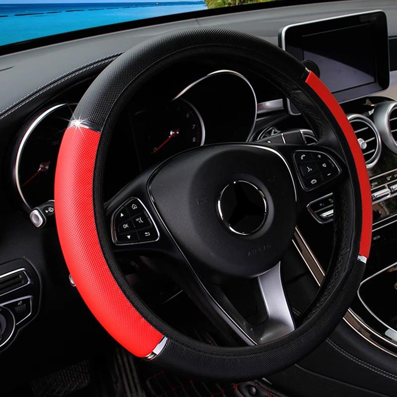 Car Steering Wheel Cover Car Steering Wheel Universal Leather Anti-slip Protective Cover Car Interior Accessories 38CM