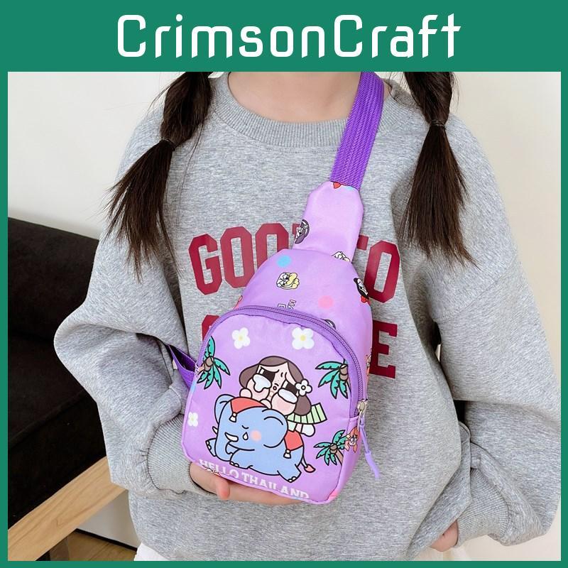 Kids Crossbody Bag Cute Cartoon Print Lightweight Nylon Backpack With Breathable Polyester Lining For Kindergarten Boys Girls
