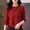 Spring and Autumn Round Neck Thin Hollow Knit Sweater Sweater Women's Short Loose Western Style Long-sleeved All-match Bottoming Top