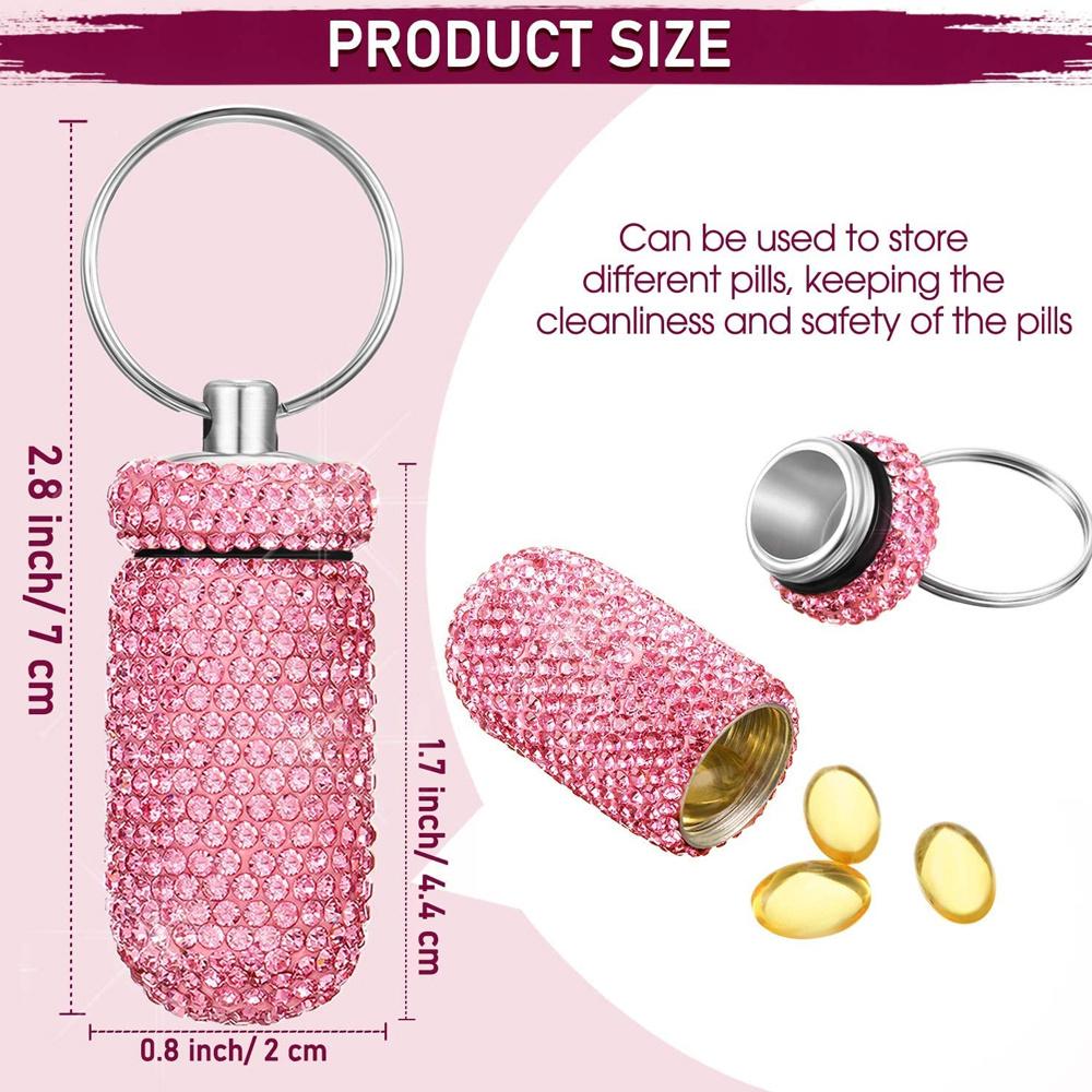 Bling Rhineston Pill Container Portable Pill Bottle Case Waterproof Travel Medicine Box Beautiful Holder Storage with Keychain