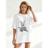 Oversized T Shirt Black Rock Hand Sign Print Casual Wear For Women