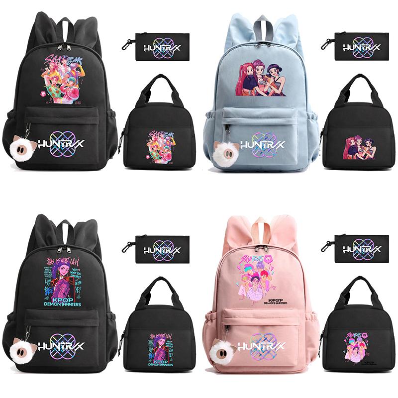 3Pcs/set K-Pop Demon Hunters Printed Backpack with Lunch Bag Pengcil Case for Teenager Girl Boy Back To School Bookbag Large Capacity Travel Bag