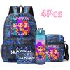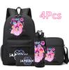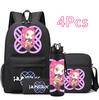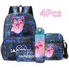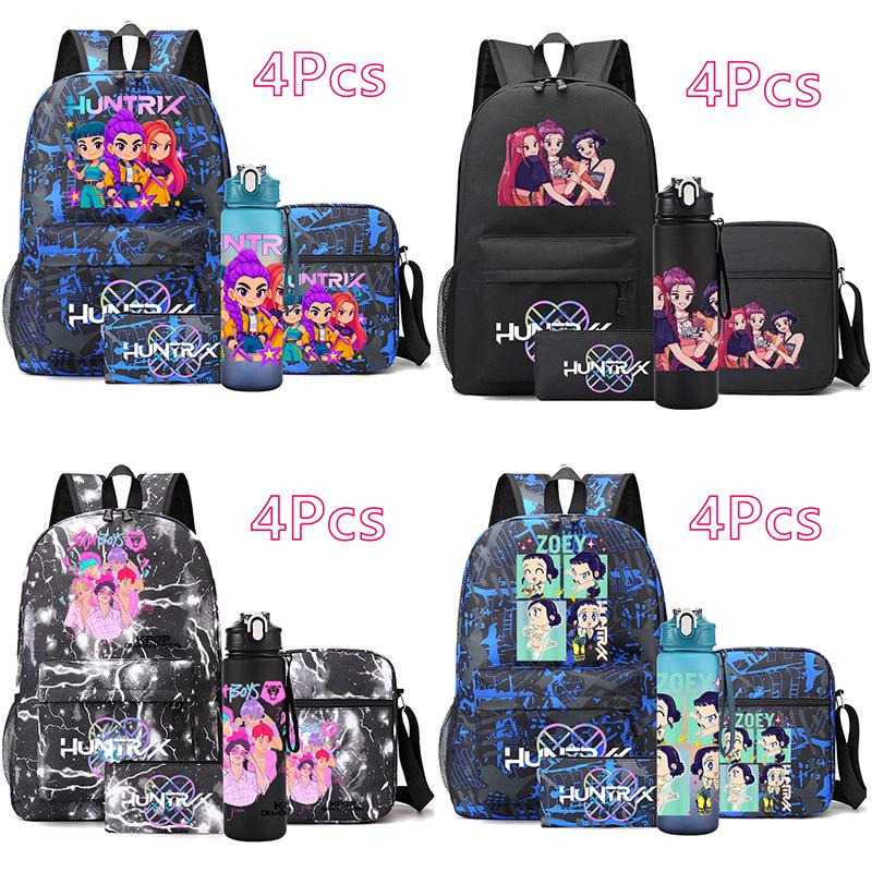 4Pcs/set Cartoon K-pop Printed Backpack Large Capacity Bookbag Shoulder Bag Case Bag with 750ml Water Bottler Boy Girl School Bag Kid Gift