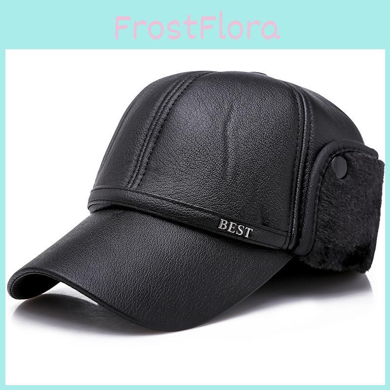 Durable Faux Leather Winter Cap With Ear Protection For Mens Outdoor Casual Fashion Accessory
