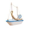 1Pc Mini Mediterranean Style Marine Nautical Wooden Blue Sailing Boat Ship Wood Crafts Ornaments Party Room Home Decoration