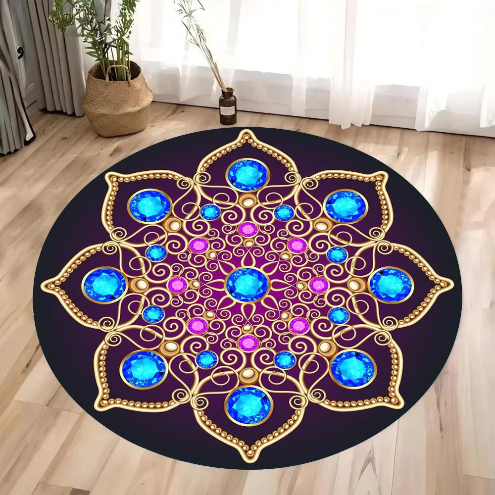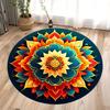 Mandala Round Rug Geometric Floor Carpet Art Deco Circle Mat Traditional Anti Slip Mat Black Area Rugs for Living Room