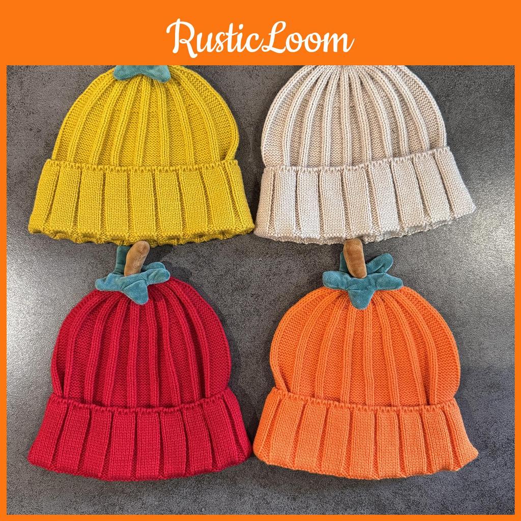Autumn Pumpkin Knit Cap With Flower Design For Casual Winter Wear Women