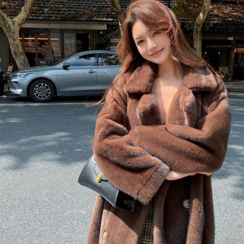 Fashion Women Faux Mink Fur Coat Winter Warm Plush Jacket Long Comfortable Eco Friendly Outerwear