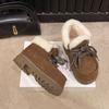 New Retro Winter Snow Boots Warm Thick-soled Plush Home Outdoor Short Boots Lace-up Medium Tube Cotton Slippers Women