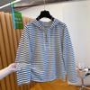 A Large-sized Hooded Striped T-shirt for Women, A Loose and Slimming Fashion Base Layer for Autumn