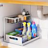 2-tier Under Sink Storage Organizer,Ajustable Sliding Cabinet Storage Basket,Kitchen Storage Rack with Suction cups,Pull Out Cab
