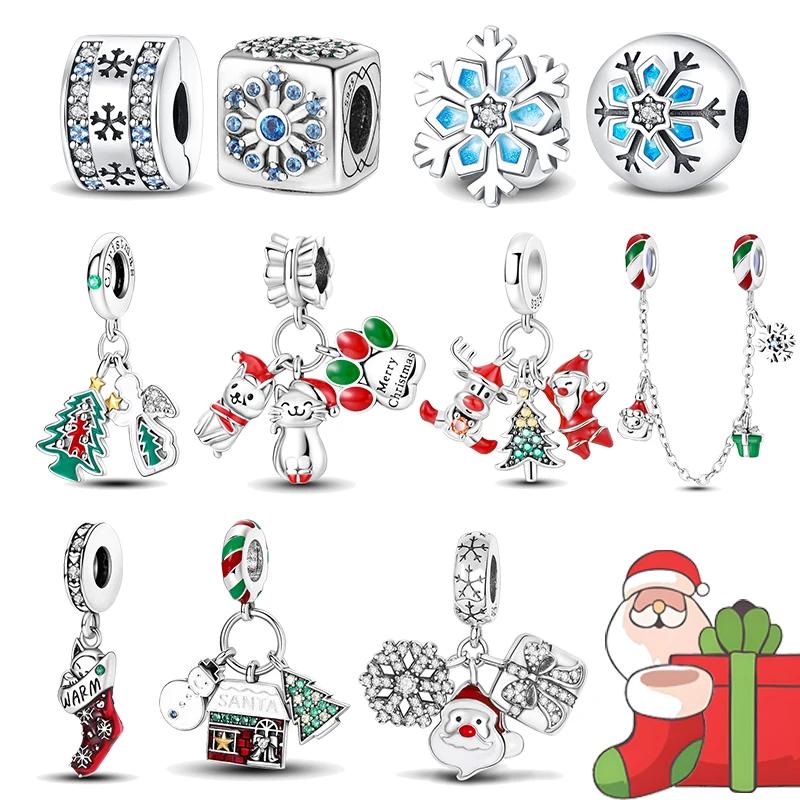 Copper Charms Christmas Elk Santa Claus Winter Dangle Charms Fit Original Bracelet Beads Diy For Jewelry Making