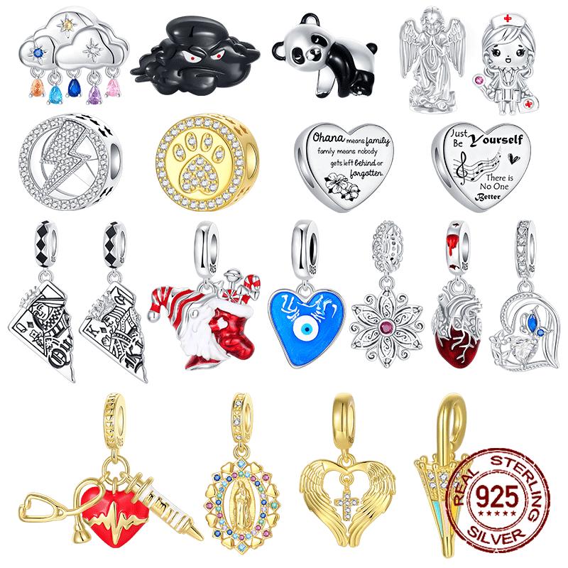 Original Copper Panda Praying Angel Charm Bead Cz Zircon Evil Eye Pendant Gift Fit Bracelet Jewelry Diy Marking