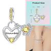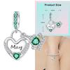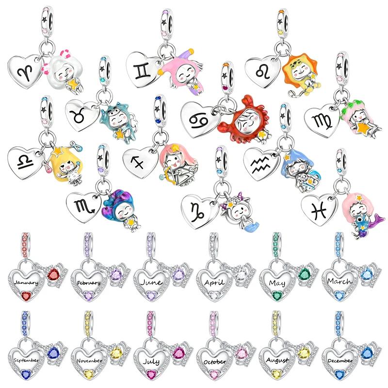 Copper 12 Months Birthstone Heart-Shaped Beads Charms Fit Original Bracelet Charm Beads Necklace Diy Female Jewelry
