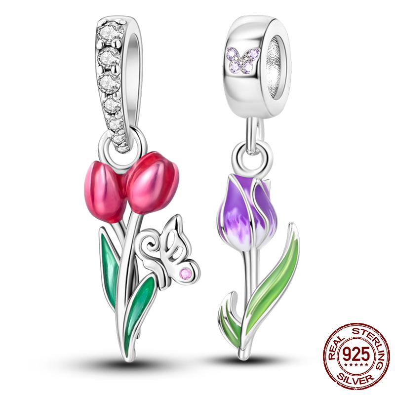 100% Copper Tulip Butterfly Pendant Charms Fit Original Bracelets Diy Jewelry For Women Girls Gift Party