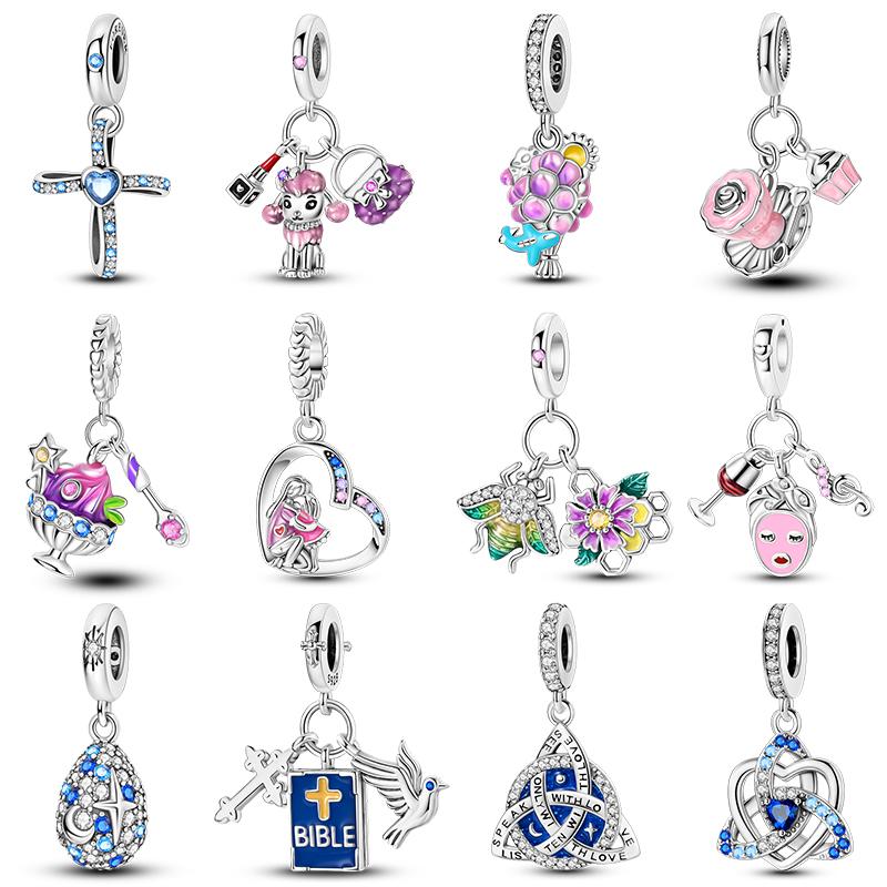 100% Copper Love Cross Bible Pendants Luminous Ufo Charms Beads Fit Qikaola Original Bracelet Fine Diy Jewelry Gift