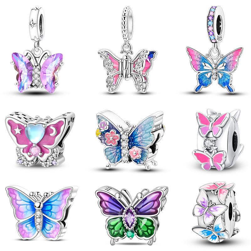 Springtime Copper Sparkling Zircon Colorful Butterfly Charms Beads Fit Qikaola Bracelets Diy Birthday Jewelry Gifts