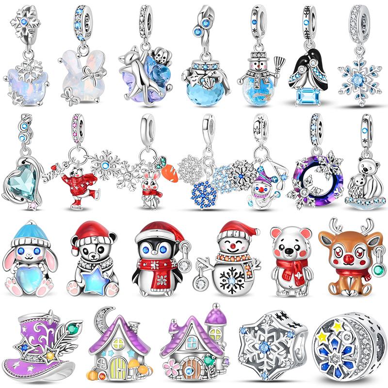 New Winter Charms Bead Copper Snowflake Snowman Penguin Deer Dangle Fit Bangle Bracelet Necklace Diy Jewelry