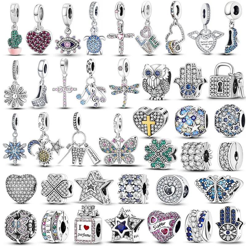 Copper Plated Charms Beads Zircon Pendants Fit Original Bangle Bracelet Making For Woman Jewelry Gift