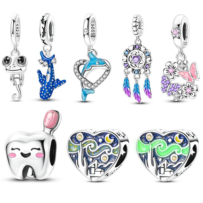 Original Copper Charms Whale Shark Dolphin Butterfly Beads Pendants Fit Bracelet Diy Pendants Jewelry Women Gift