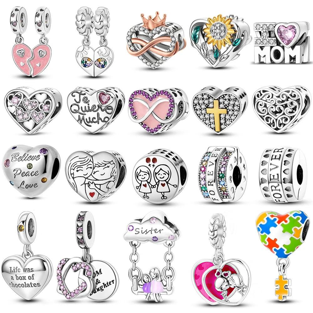 Copper Plated Beads Infinity Love Mum Heart Mom Dangle Charm Fit Charm Bracelet Plata De Ley Original Jewelry