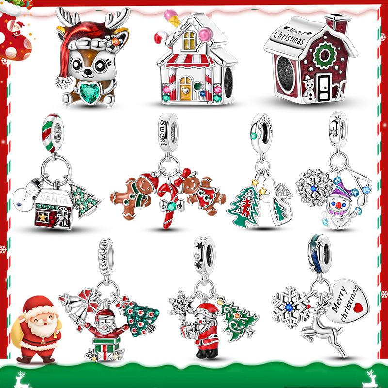 Charms Winter Christmas Elk Santa Claus Beads Copper Plated Fit Original Pan Bracelet Pendants Making Fashion Jewelry