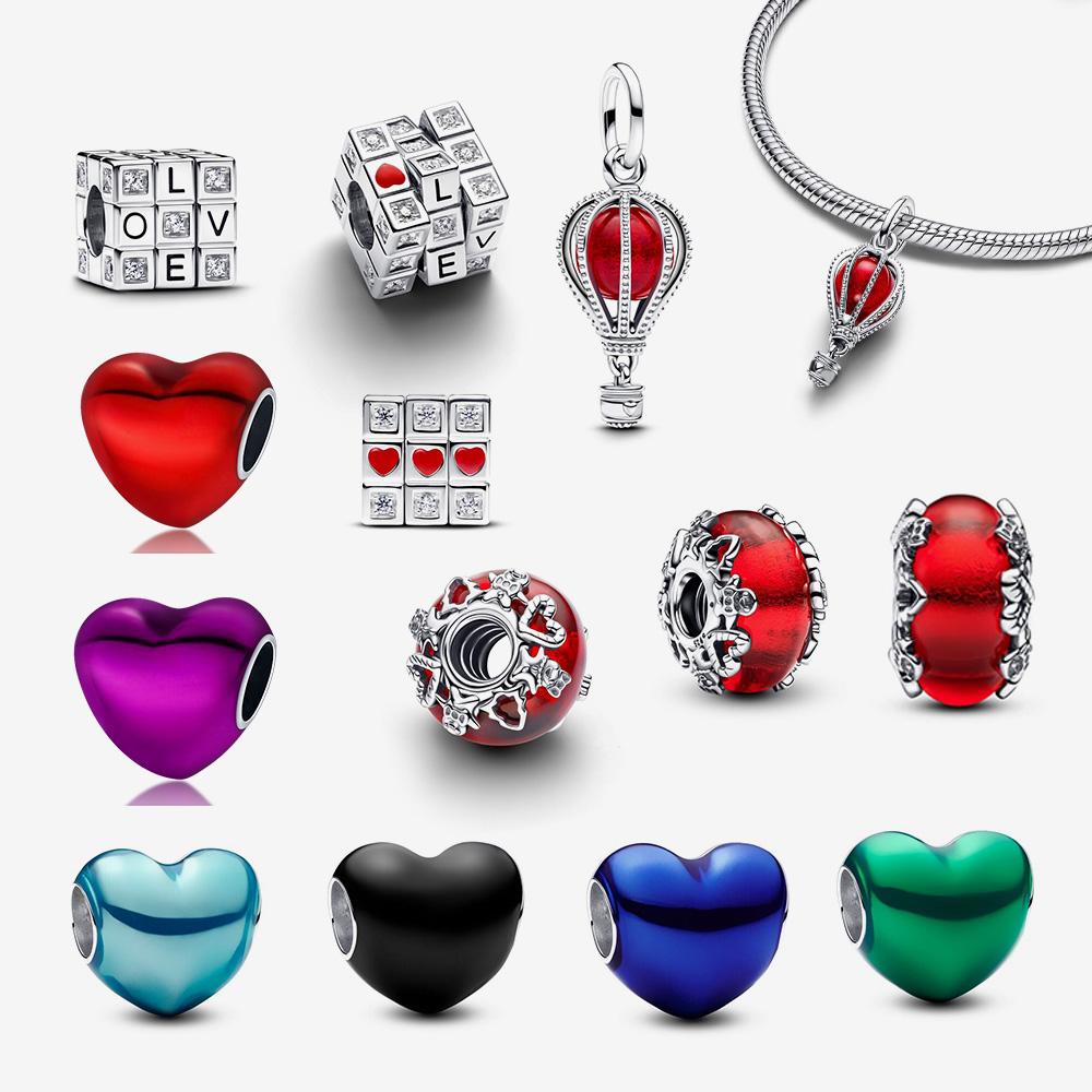 New Black/Red/Blue/Green/Purple Heart Series For Original Bracelet Bead Charm 3Mm Diy Necklace Pendant Accessories