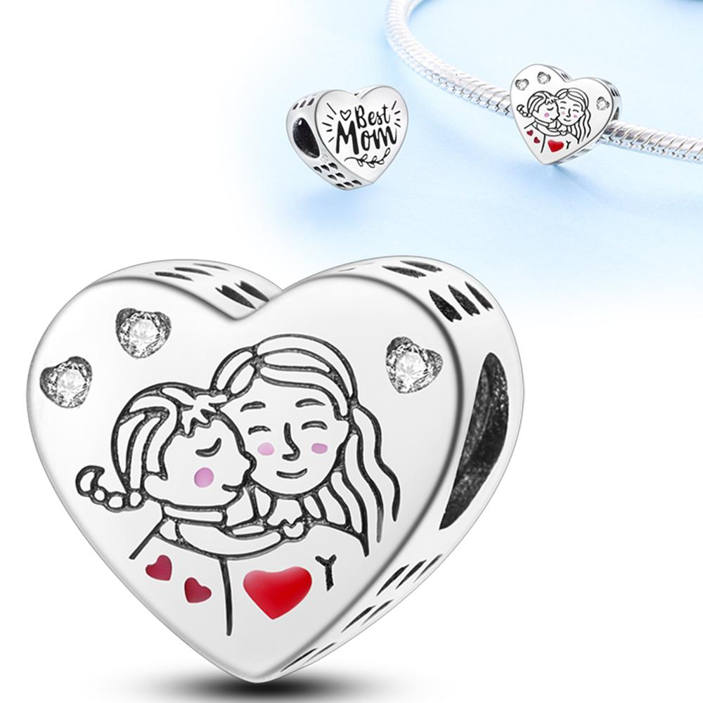 Original Charms Copper Great Motherly Love Heart-Shaped Beads Fit Charms Plata Bracelets For Women Jewelry Making Gifts