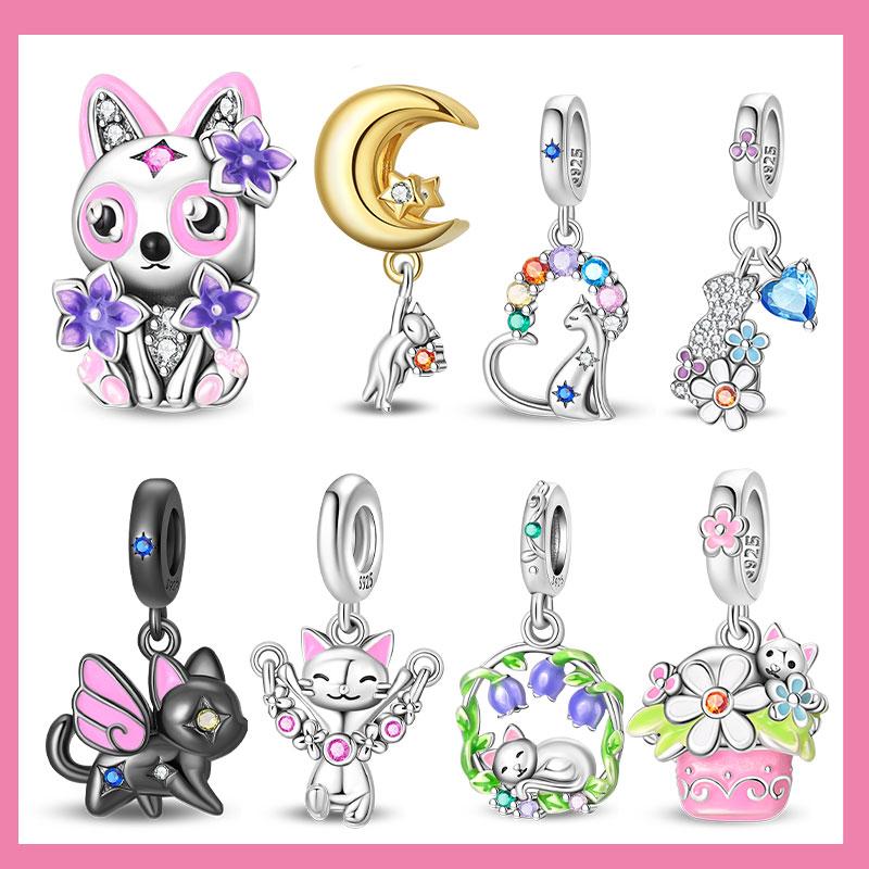 Orange Pet Series Beads Pink Flowerpot Jump Rope Kitten Charm Bracelet Fit Copper Women'S Necklace Diy Jewelry Gift