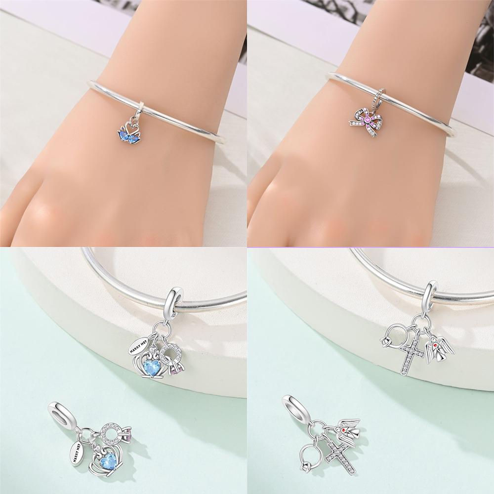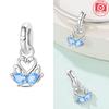Charms Copper Original Blue Zircon Swan Pendant Butterfly Shoes Bead Fit Bracelet Women Jewelry Diy Accessory Gift