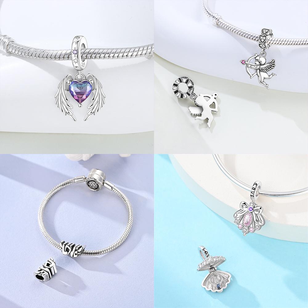 Original Copper Romantic Love Pendant Wings Pink Heart Butterfly Knot Beads Fit Bracelet Women Jewelry Diy Accessory Gift