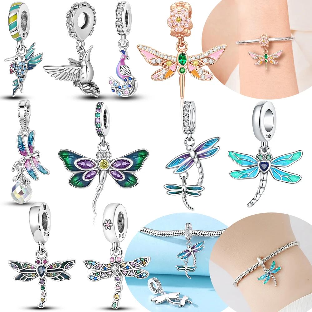 Original Blue Colored Dragonfly Rose Gold Bird Phoenix Copper Bead Fit Bracelet Women Gift Diy Accessory Party Jewelry
