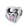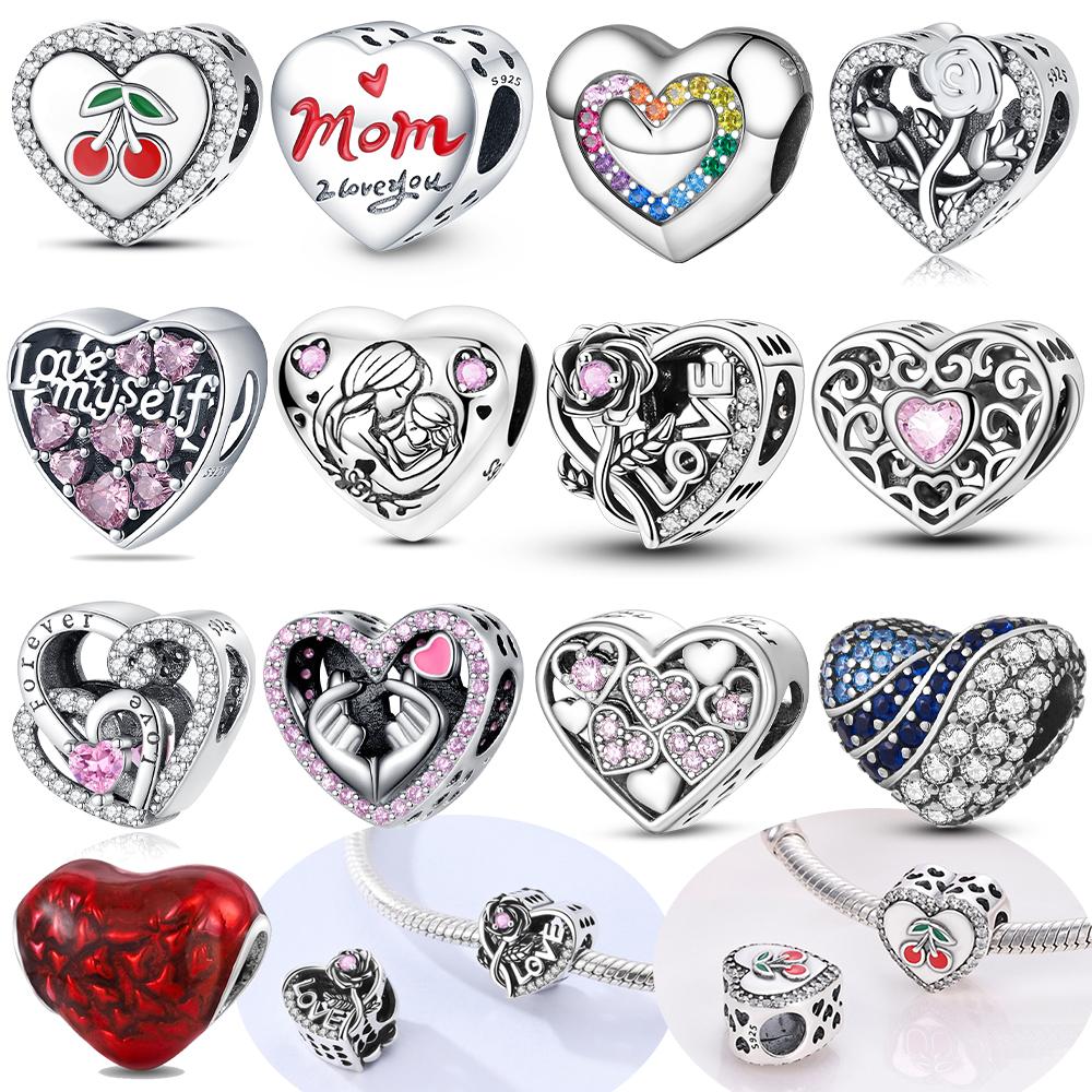 Original Charms Copper Pink Love Heart Zircon Cherry Love Rose Flower Beads Fit Bracelet Women Jewelry Diy Accessory Gift
