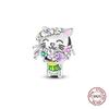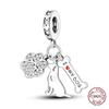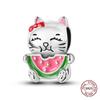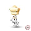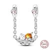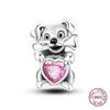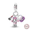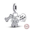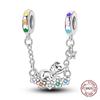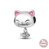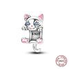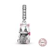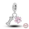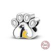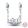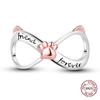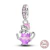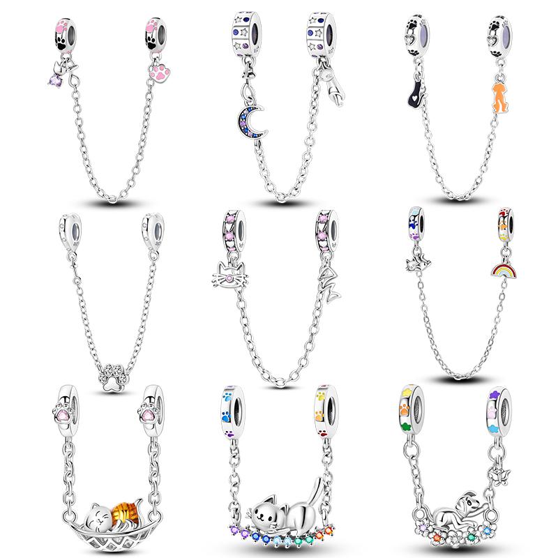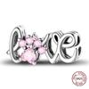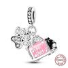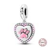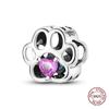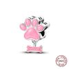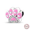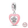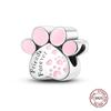 Copper Original Dog Cat Safety Chain Lazy Cat Pink Zircon Pet Paw Print Footprint Charms Fit Bracelet For Women Diy Jewelry