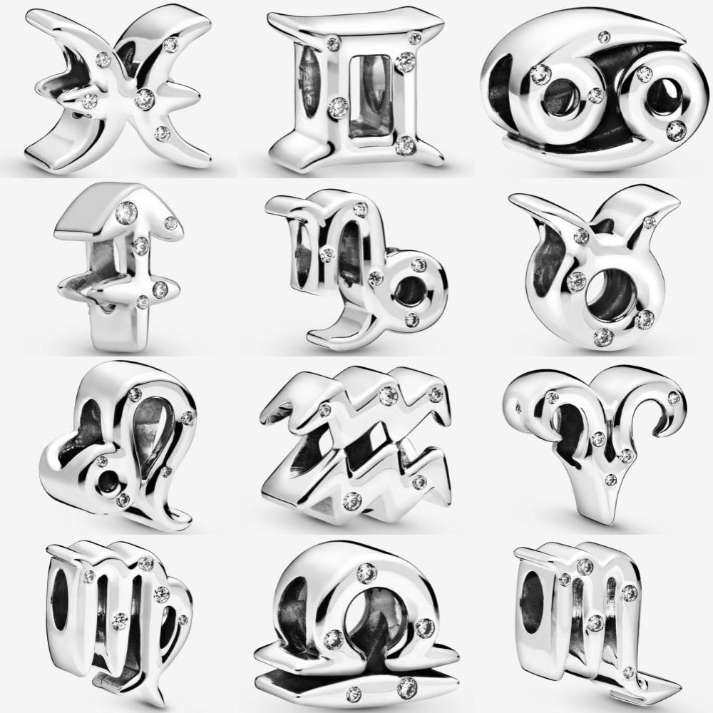 New Classic Copper Leo Aries Virgo 12 Signs Of The Zodiac Light Zircon Charm Beads Fit Bracelet Original Jewelry Diy Gift
