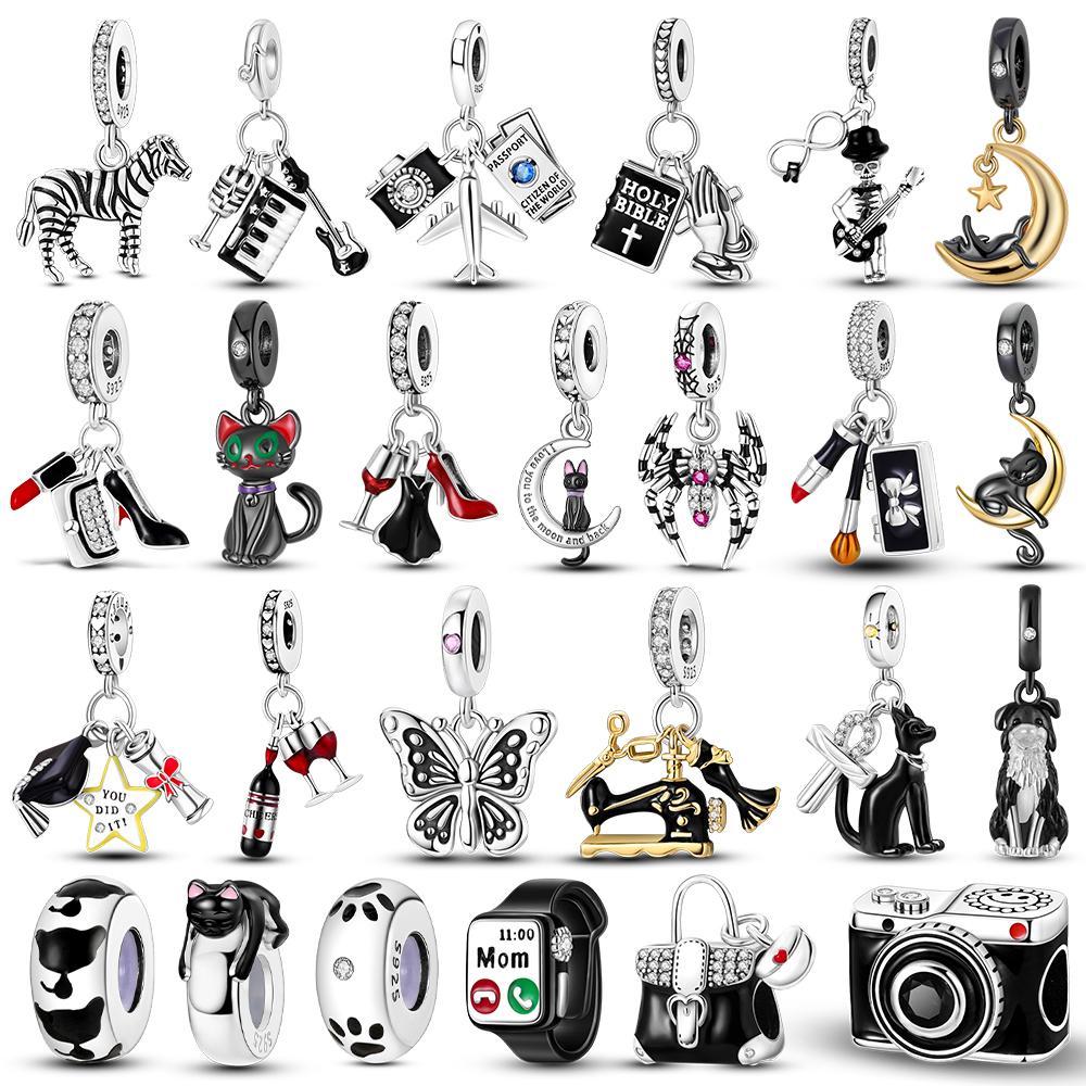 Black Series Charms Copper Cat High Heels Lipsticks Beads Fit Original Bracelet Diy Pendants Fashion Jewelry For Woman