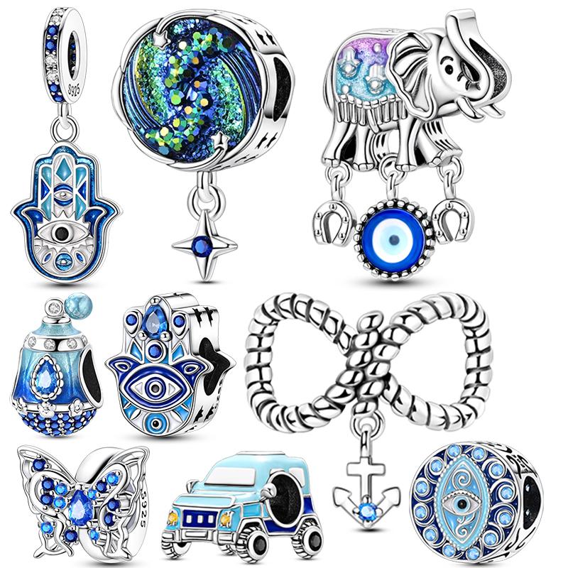 Original Copper Elephant Eye Hand Car Butterfly Blue Zircon Beads Pendants Charms Fit Bracelet Necklace Jewelry