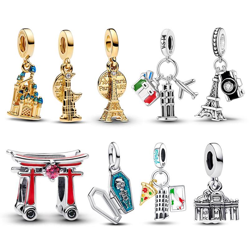 Original Charm Copper Landmark Building Series Charm Bead Fit 3Mm Original Bracelet For Women Diy Fine Jewelry Gift