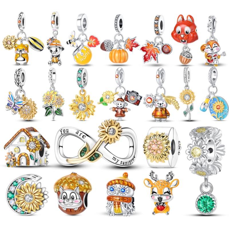 New Copper Autumn Golden Charms Maple Leaf Squirrel Pumpkin Deer Beads Fit 3Mm Original Bracelet Diy Jewelry Gifts